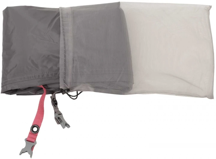 Hat dieselbe Form wie der Zeltgrundriss, ist aber etwas kleiner geschnitten, damit der Regen nicht zwischen Unterlage und Zeltunterboden laufen kann. In der Apsis schützt der Footprint wie ein Teppich vor Dreck und Feuchtigkeit im Zelt. Bei vielen Zeltmodellen ist es möglich Footprint und Aussenzelt als Minimum für Leichtgewichtstouren zu kombinieren.