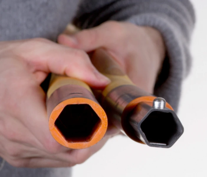 Teilbares Grönlandpaddel aus hexagonal gewebtem Carbon.