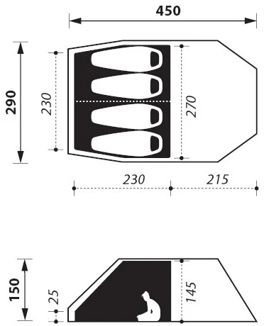Funktionelles leichtes Tunnelzelt mit einer Innenzelthöhe von 135 cm (Zeltmitte) für die Familie. Für einen schnellen Aufbau sind Innen- und Außenzelt aneinander gekoppelt.