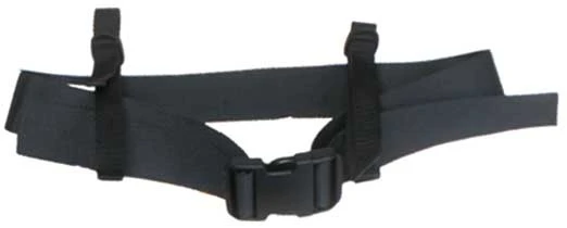Rückengurt aus 48 mm breitem, extra starkem schwarzen Polyester-Gurtband gefertigt. Mit Steckschnalle einstellbar, Abspannung mit zwei losen Gurten.
