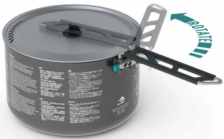 Siebdeckel mit Lochmuster für effizientes Wasserabgießen und ergonomischem Pivot-lock™ Silikon-Edelstahl-Griff mit Sicherheitsverschluss, so liegt jeder Topf stabil in der Hand, nach dem einklappen befestigt er den Deckel auf dem Topf. Die hart-anodisierte Oberfläche schafft eine robuste, abriebfeste und leicht zu säubernde Kochfläche. Die verschiedenen Größen sind ineinander nestbar. Eingravierte Maßeinheiten, das gravierte Muster an der Topfunterseite hält den Topf stabil auf jedem Campingkocher.