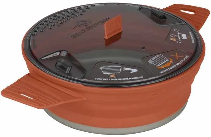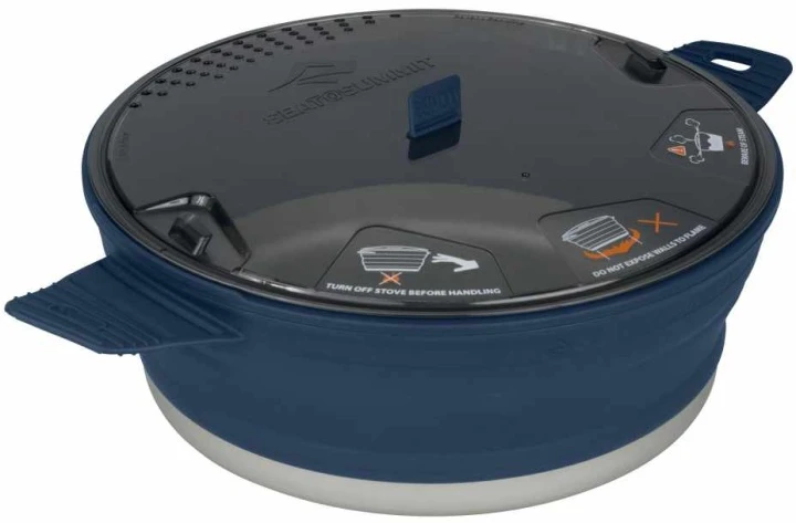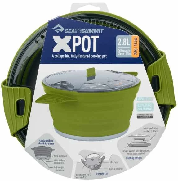 Der X-Pot ist ein faltbarer, voll ausgestatteter Kochtopf, der die Hitzeverteilung von Aluminium mit der Flexibilität von Silikon verbindet. Der hart-anodisierte Boden bringt Wasser schnell zum Kochen und der hohe Silikonrand ist exzellent beim Umrühren.
