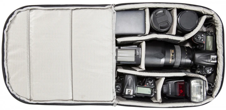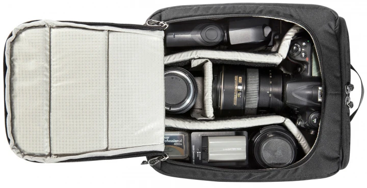 Gepolsterte Fototasche zur Integration in Rucksack, Reisetasche oder wasserdichten Packsack. Das Camera Insert besitzt eine variable Innenaufteilung für die Fotoausrüstung, und es lässt sich durch den Rundum-Reißverschluss auf der Rückseite komplett aufklappen. Der Reißverschluss an der Oberseite bietet schnellen Zugriff auf die Kamera, wenn die Fototasche in einen Rucksack integriert ist.