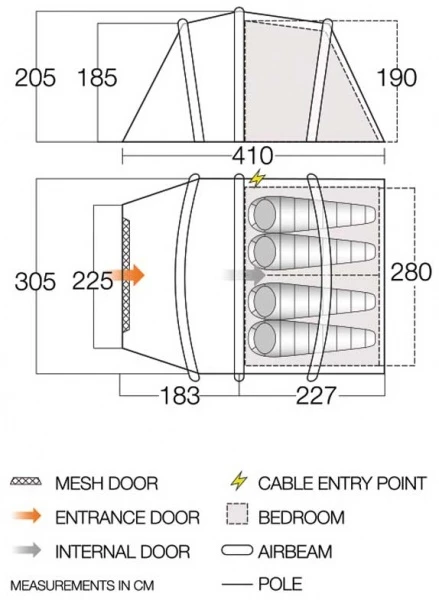 Es hat ein kleines Packmaß und ist für ein Familienzelt überraschend leicht, so kann es einfach mitgenommen werden uns ist in kürzester Zeit aufgebaut. Das Santo bietet Stehhöhe und zwei geräumige Schlafkabinen, die zu einer großen Kabine verwandelt werden können.