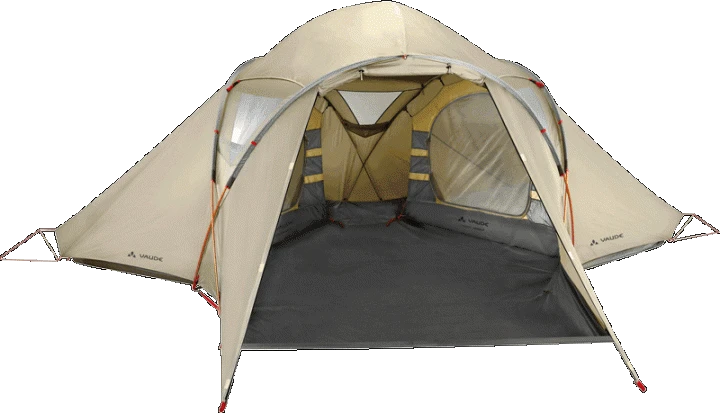 Einzigartig ist der riesige, gestängefreie Innenraum mit einer zentralen Ventilationskuppel, die für ein perfektes Raumklima sorgt. Großzügige Netzfenster erhellen den Innenraum und unterstützen die Frischluftzufuhr, eine praktische Organizer-Tasche für hilfreiche Ordnung und die Bodenunterlage im Vorraum für trockene Füße gehören dazu.