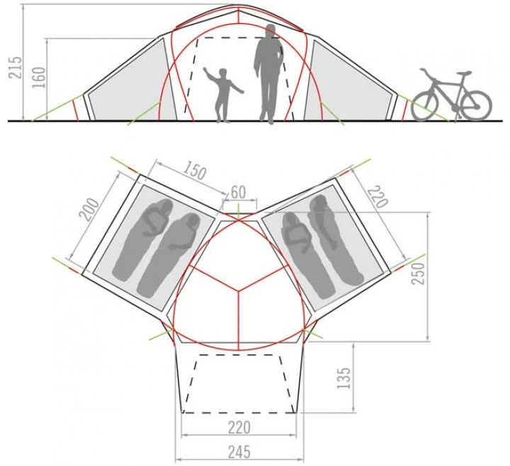 Geniale, preisgekrönte Zeltkonstruktion mit großem Platzangebot und exzellenter Belüftung.