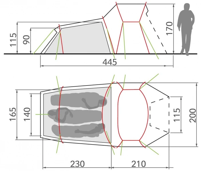 Ein Zelt mit Kopffreiheit und Raum für Gepäck bei gleichzeitig wenig Gewicht. Das Innenzelt bietet Platz für 2-3 Personen. br>