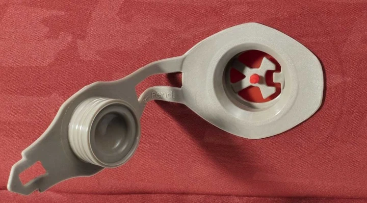 Einfach zu bedienendes Vaude-Rückschlag-Flachventil, inkl. Packsack für Transport und Lagerung, Reparaturkit für den Notfall.