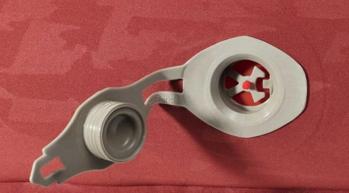 Einfach zu bedienendes Vaude-Rückschlag-Flachventil, inkl. Packsack für Transport und Lagerung, Reparaturkit für den Notfall.